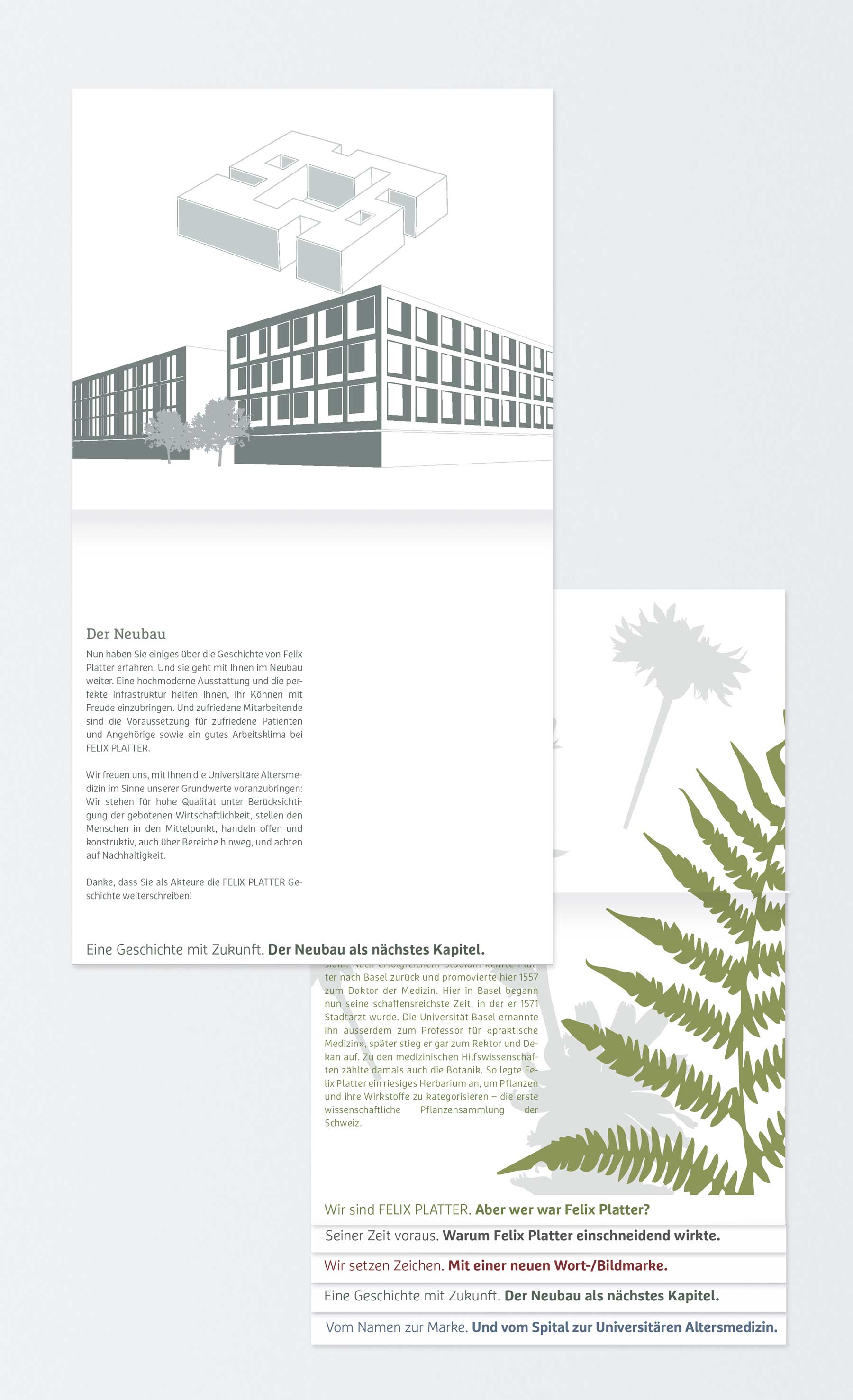 Das Felix Platter Spital gehört zu den führenden Universitären Zentren für stationäre und ambulante Altersmedizin in der Schweiz. Gleichzeitig zum Umzug des Felix Platter Spital in den Neubau, wurde der visuelle Auftritt neu gestaltet.